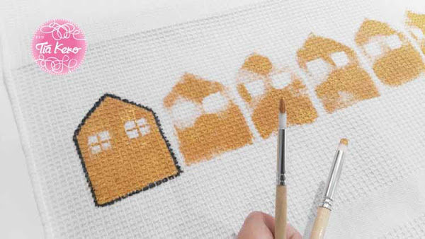 También rotularemos cada casa con un rotulador de tela para que el colorido quede más vistoso.