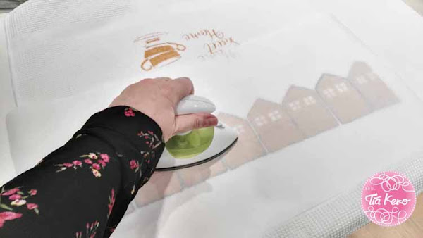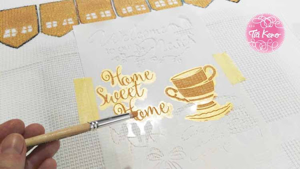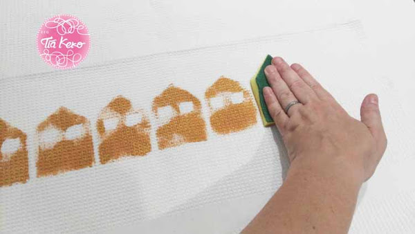 Si queremos podemos hacer un dibujo adicional en el otro lado del paño, nosotras teníamos una plantilla de estarcido que nos apreció perfecta para este paño.