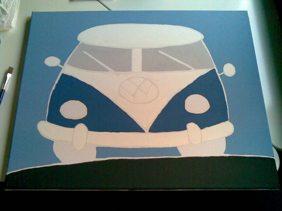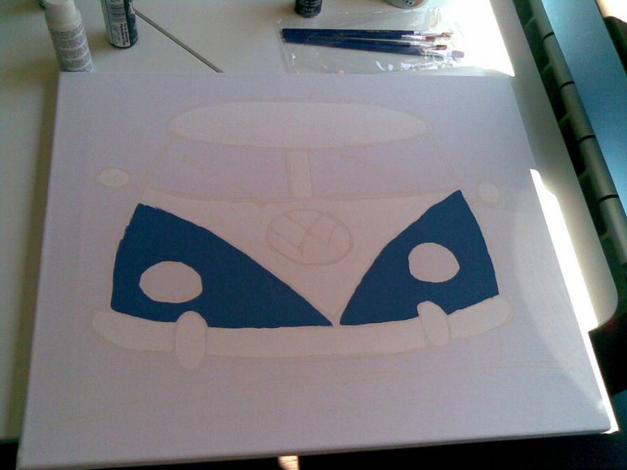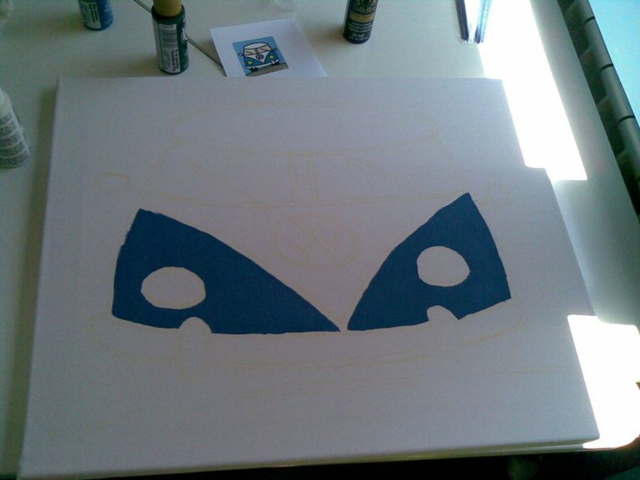 Inos olvidó comprar la pintura que la plantilla indicaba para los cristales de la furgoneta. Por ello resolvió pintarlos de gris, y el resultado le gustó más que el cuadro original.
