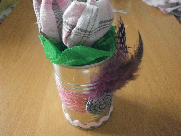 También le cosí un abalorio en el medio. Hice tres tulipanes ya que la lata era pequeña.