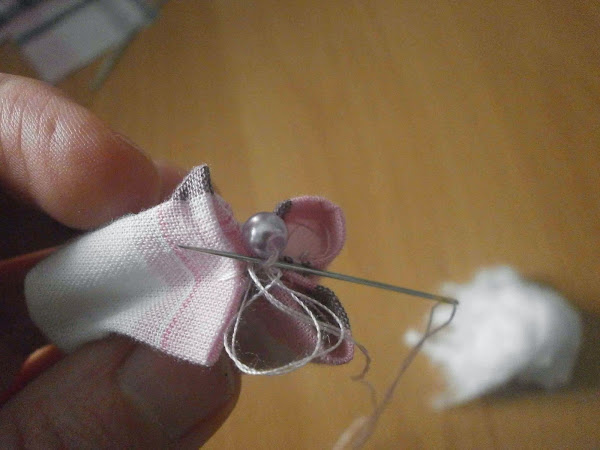 Y por el otro lado también lo cosí pero fruncido, introduciendo el alambre. Una vez cosido le puse silicona asegurando de que quedara sin moverse el alambre y así no poder salirse.