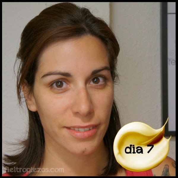 Siento mi piel hidratada en todo momento, pero sin nada nada nada de brillos. Ahora tengo un tono más uniforme, menos puntos negros, los poros son menos evidentes, y noto un aspecto general más joven y luminoso. Incluso un pequeño eczema que tenía junto al nacimiento del cabello, en la sien, está corregido.