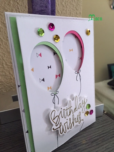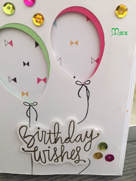como en el kit vienen unos sellos de globos , y es para celebrar cumpleaños yo he querido seguir esa temática, pero he recortado los globos y usado el negativo,