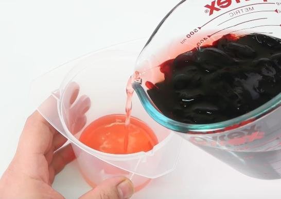 Mezcla en un recipiente los polvos de hornear y el agua caliente. Deshaz bien los polvos y deja enfriar. Paralelamente en otro bol mezcla el pegamento, el agua, el líquido de lentillas y la Idopovidona para darle color.