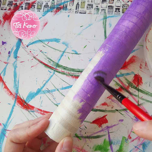 Después vamos a coger la cinta de carrocero y vamos a cubrir todo el tubo de cartón para que quede más fuerte y seguro.