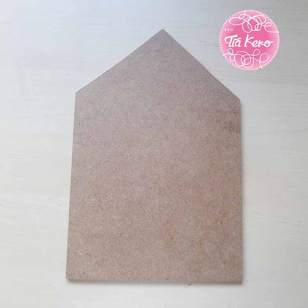Lo primero que haremos será dibujar en la placa de aglomerado la forma de casita para poder recortarla y hacer la forma de casa del colgador.
