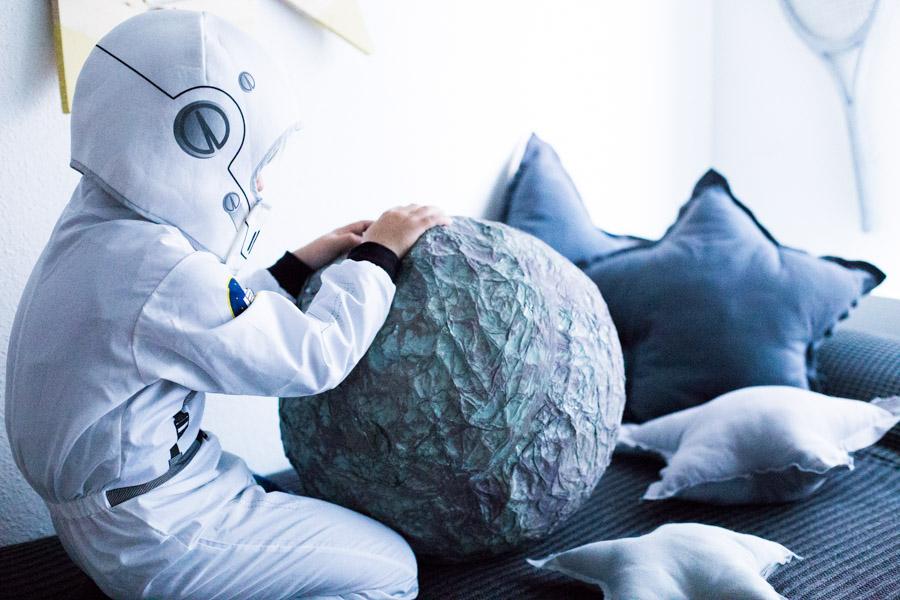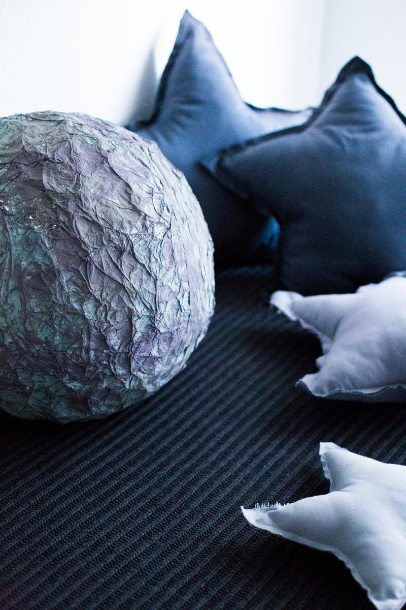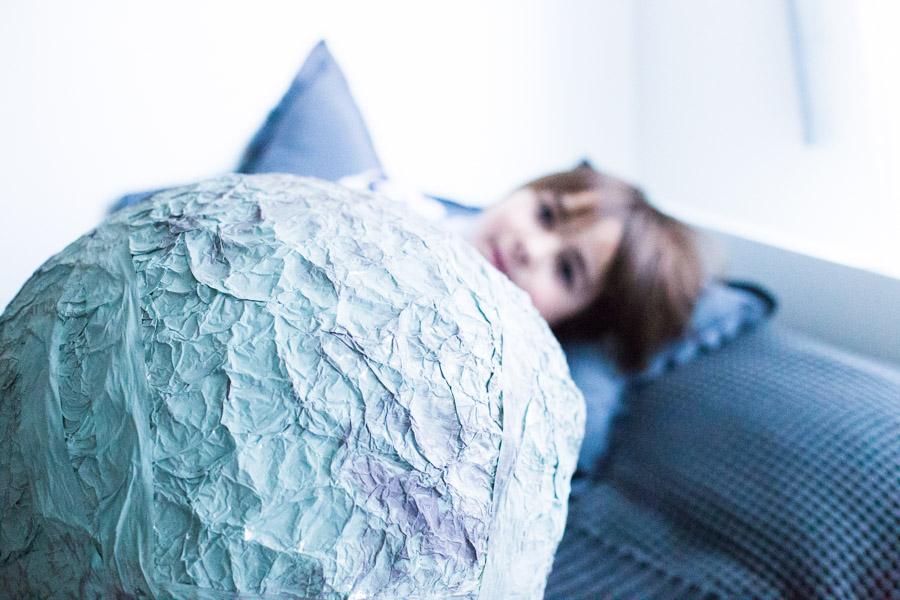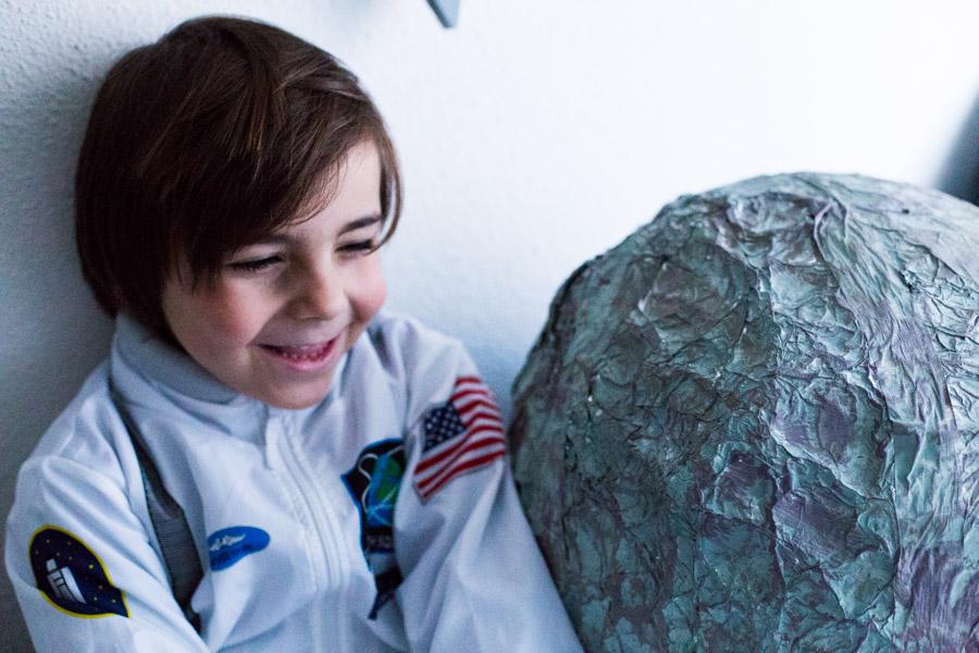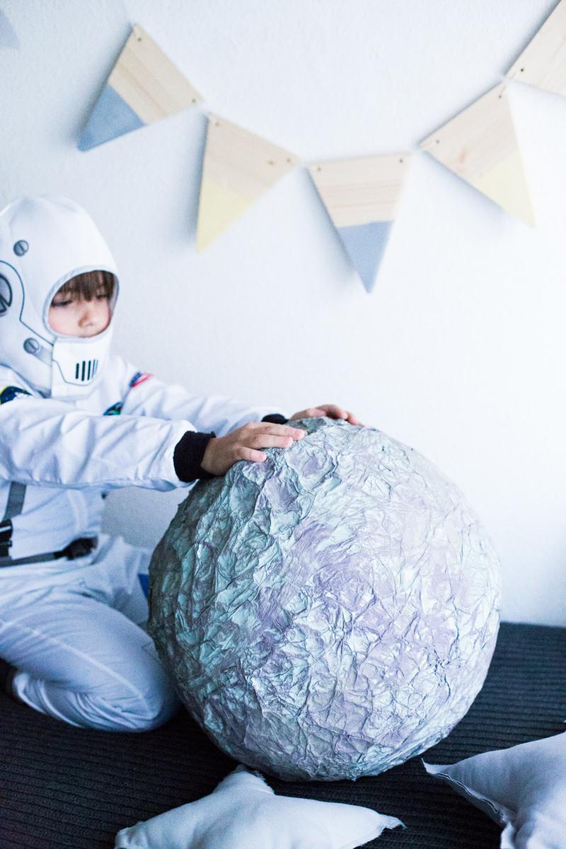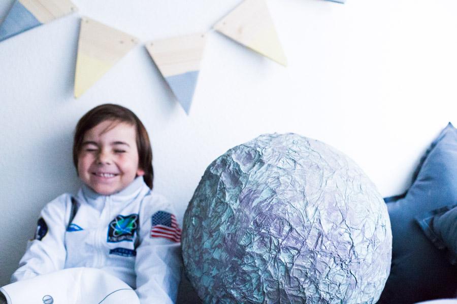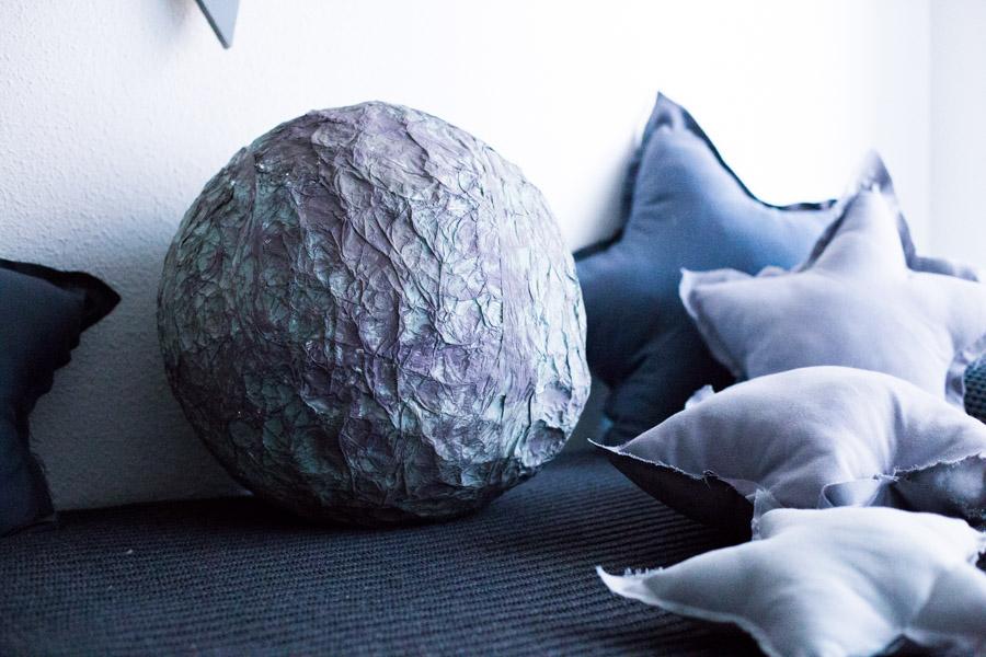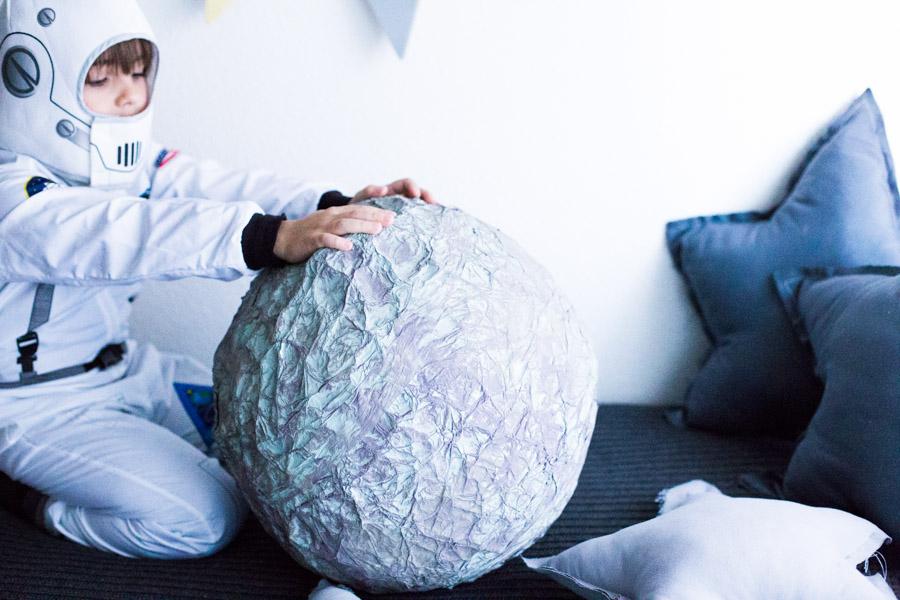 Una vez seco, le fui dando toques con dos tipos de gris diferentes. Y de verdad en un rato al día de un fin de semana, terminamos nuestra Luna diy para el proyecto del cole.