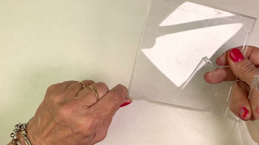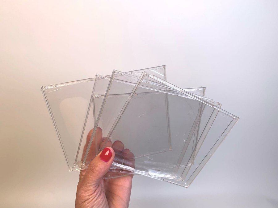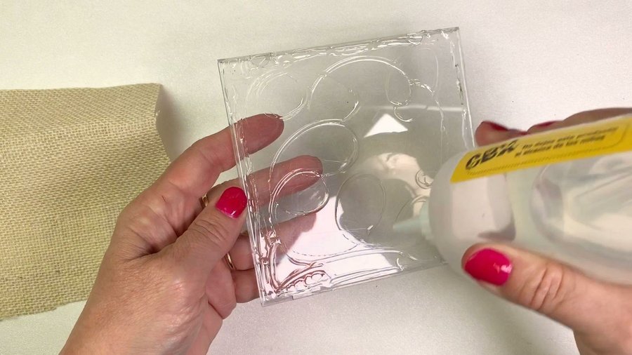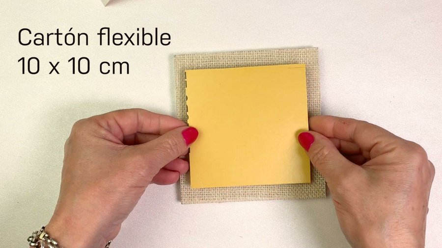 Por otro lado utilizando un cartón flexible recorté un cuadrado de e 10 x 10, que es 2 cm más chico que la tapa de CD.