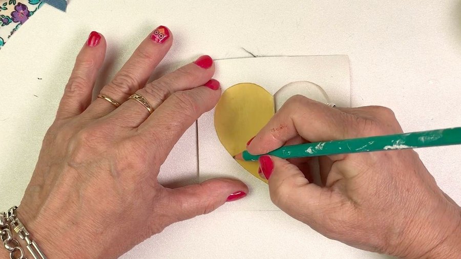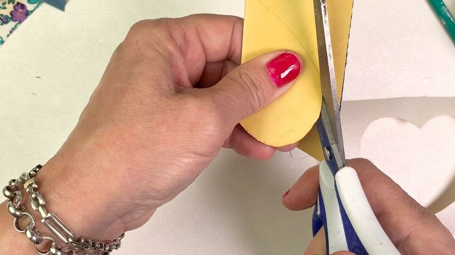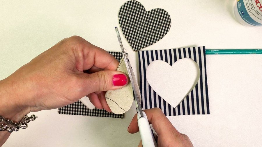 A los corazones que recorté los achiqué como les había enseñado para que se note la tela de abajo.
