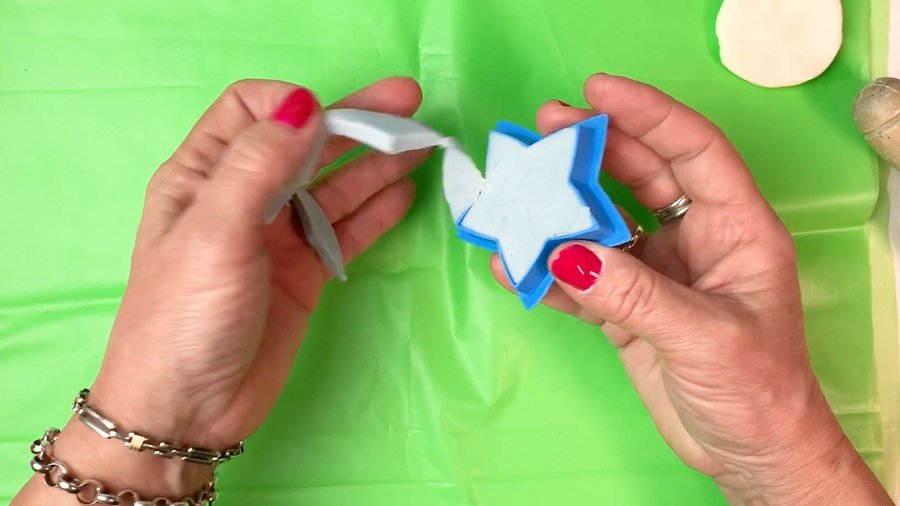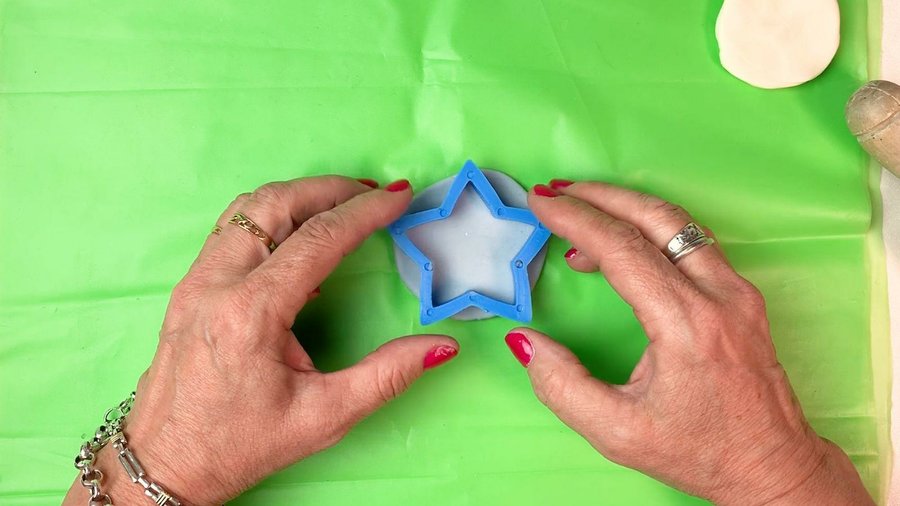 Amaso y hago una esfera entre las manos y la estiro y con un cortante en forma de estrella la recorto y la emparejo.