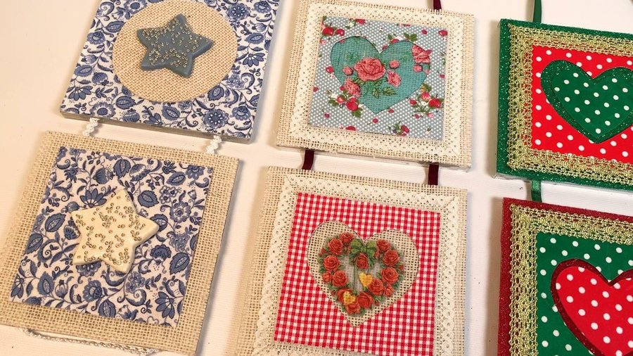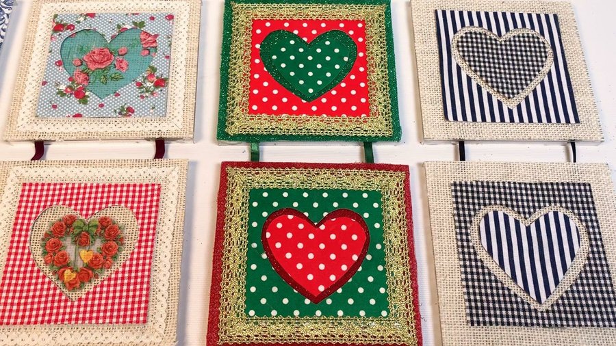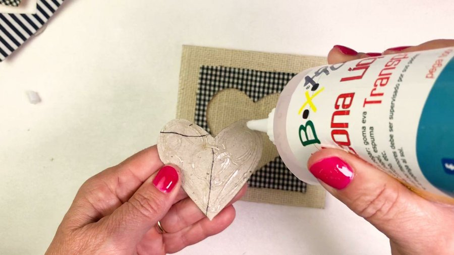 Pego con silicona cada uno de los cuadrados y en el medio el corazón. Más que fácil.