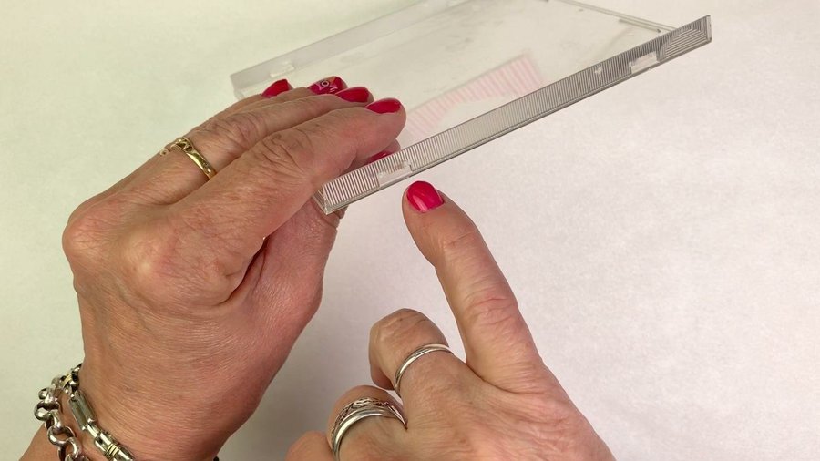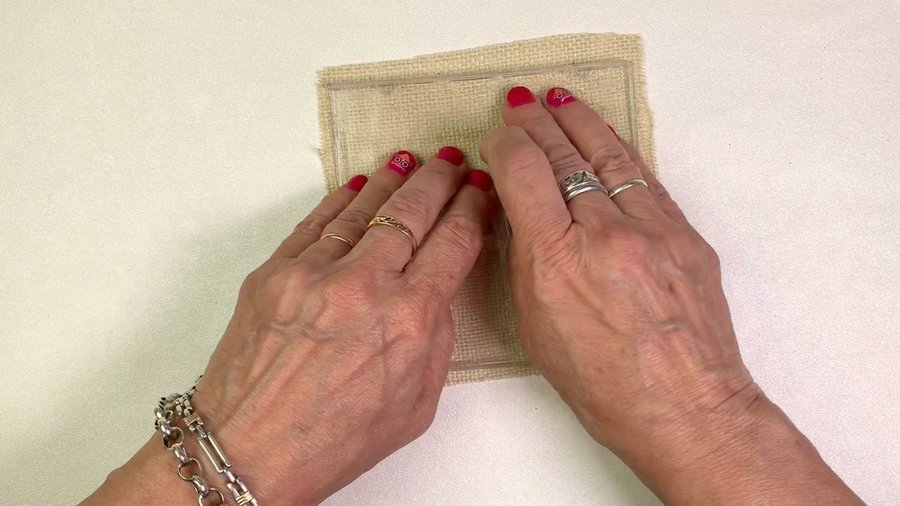Apoyo la tela, presiono y también puedo dar vuelta la tapa y presionar.