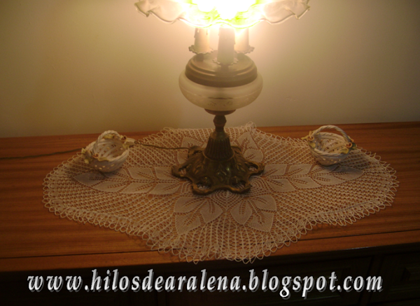 Para todas aquellas amigas arañitas, a las que les gusta tejer con 2,3, 5.......agujas.Vuelvo a poner este hermoso centro de mesa ovalado ( aunque yo lo tenga en otro mueble, Jajaja).Pero esta vez pude subir los gráficos y demás.La parte a destacar en este trabajo , son los garbanzos o bodoques que salen del centro , dando relieve al centro de las 6 hojas centrales.Este trabajo lo encontré en l ...