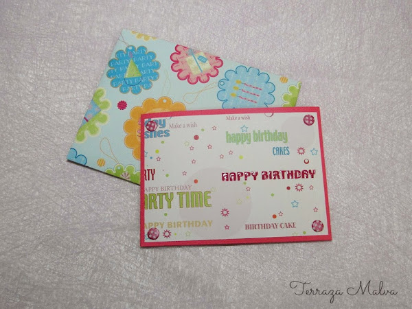 Me he decidido por una tarjeta de felicitación y como me acababa de llegar el material que pedí por mi cumpleaños, pues no me he podido resistir y lo he tenido que probar.