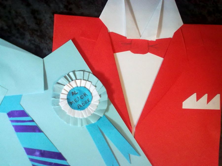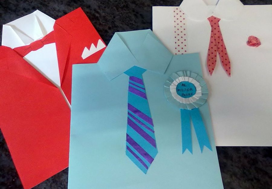 Las tarjetas en forma de camisa son una una idea genial. Puedes imitar su camiseta o camisa preferida con todo detalle. También puedes realizar su corbata o pajarita, añadirle unos gemelos o un pañuelo en el bolsillo. Puedes hacer una felicitación abierta o cerrada, pero debes dedicale unas palabras significativas. Esta tarjeta se puede hacer con cualquier prenda. Por ejemplo, puedes realizar unos pantalones o un cinturón. Tan solo necesitas unas cartulinas, colores y un trozo de tela para hacerlo más real.