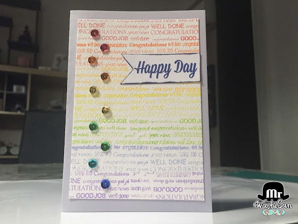 La parte de arriba es muy simple, un troquel con la frase "Love this life" y dos tiras de Washi Tape de corazones enmarcándolo.