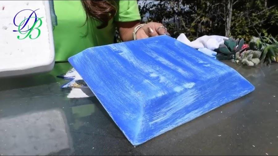 Lo primero que haremos es pintar nuestro plato, con pintura azul rey, dos capas. Dejando secar entre capa y capa.