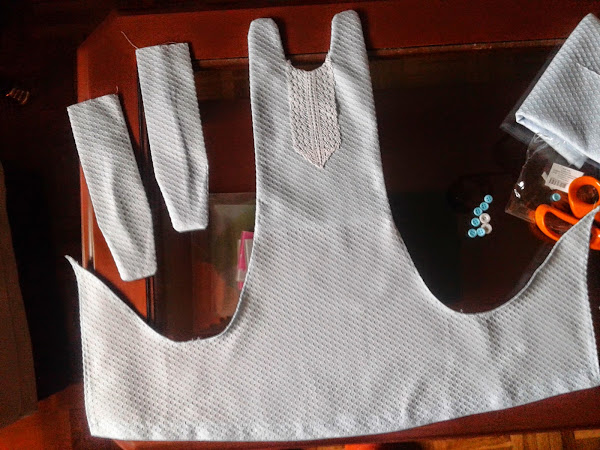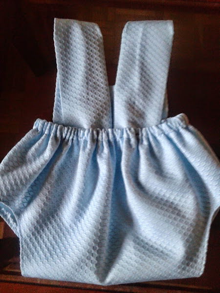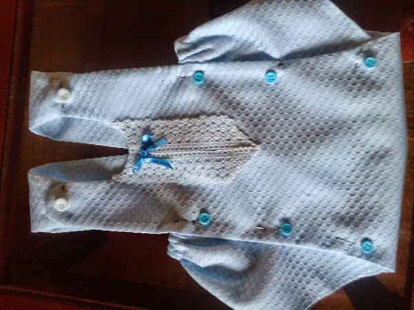 0.60 m doble de ancho de piqué, 8 botones, hilo, cinta de goma elástica y adorno.
