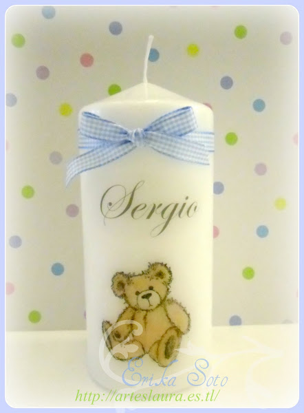 Bueno esta es una velita personalizada para un bebe muy especial...y aprovechando esta entrada quiero invitaros a todas a que visiteis el blog de mi amiga TERE AZUA ya que tiene un magnifico regalo navideño
