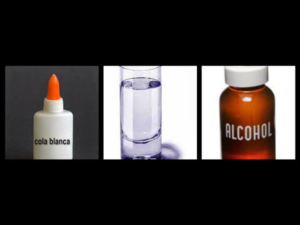 cola blanca común, alcohol liquido y agua.