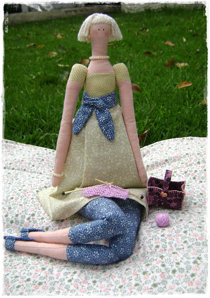 El año pasado me inscribí en el Sal de la Tilda Flowergarden propuesto por Virginia pero no lo pude terminar, este es uno de los varios proyectos pendientes pero no olvidados que tenía por finalizar . Comencé haciendo dos muñecas...Esta la terminé hace pocos días, se la hice a mi madre por su cumpleaños y como a ella le encanta tejer pues decidí hacerla con su kit de tejido.Las agujas están hechas ...