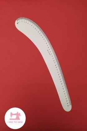 esta regla es de material acrílico transparente y se utiliza para trazar sisas, corte francés escotes ,tiro de pantalón y copa o corona de mangas