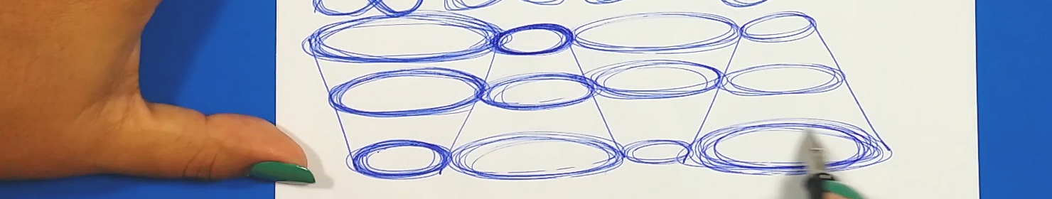 Este es un ejercicio muy bueno y ayuda mucho para la coordinación, simplemente vamos a dibujar unas lineas inclinadas para formar un especie de triangulo y luego dentro de las lineas vamos a comenzar a dibujar elipses de varios tamaños, para dibujar los elipses vamos a repetir lo que hicimos con los círculos, primero vamos a hacer el movimiento con la mando sin apoyar el lápiz al papel y cuando ya se sientan cómodos con el movimiento apoyan el lápiz y comienzan a dibujar los elipses.1