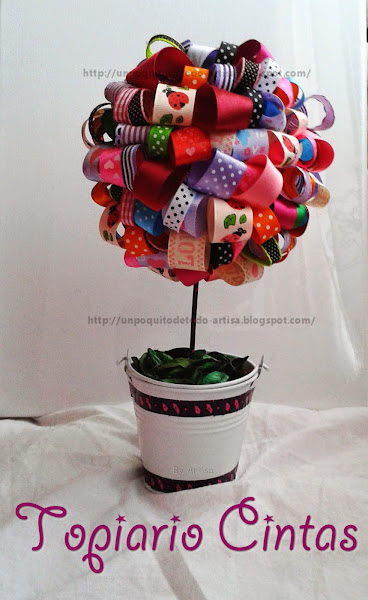 Hola, ¿qué tal llevais las vacaciones?, aún nos queda un día mas, este año aquí es fiesta mañana también, yo sigo preparando cositas para el mercadillo, (se va a celebrar el día 27 de abril de 17 a 20 h en La leche militina, en la calle la Parra - por si alguien quiere pasarse por alli). Esta vez os enseño un topiario de cintas, especial para regalar el día de la madre que lo tenemos ya muy cerca. ...