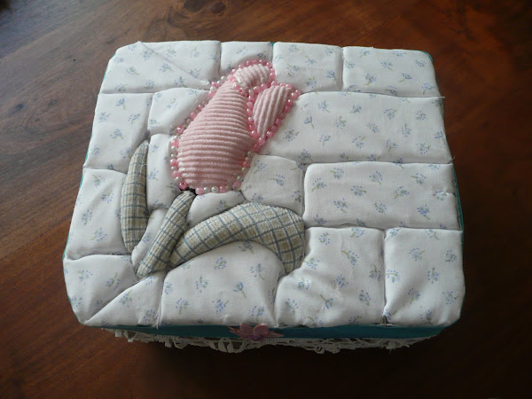 Hoy les vengo a mostrar este trabajo que realizamos en conjunto en "El rincón de mis amigas", organizado por Paqui de Nuestro rincón. Era un diseño de patchwork sin aguja, técnica que nunca había utilizado. Decidí realizarla en una caja donde guardo mis cintas.No me quedódemasiadoprolija pero seguiré intentando, los bordes de la flor los decoré con mostacillas y el borde de la caja con una pedacit ...