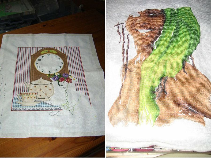 Los bordados en fase de elaboración ofrecen el irresistible encanto de los esbozos de pintura. Además, son muy estimulantes para quienes temen empezar cuadros en punto de cruz que requieren meses de abnegada dedicación. Viendo labores en el bastidor recordamos que el viaje más largo empieza por el primer paso, como dice el animoso proverbio chino.