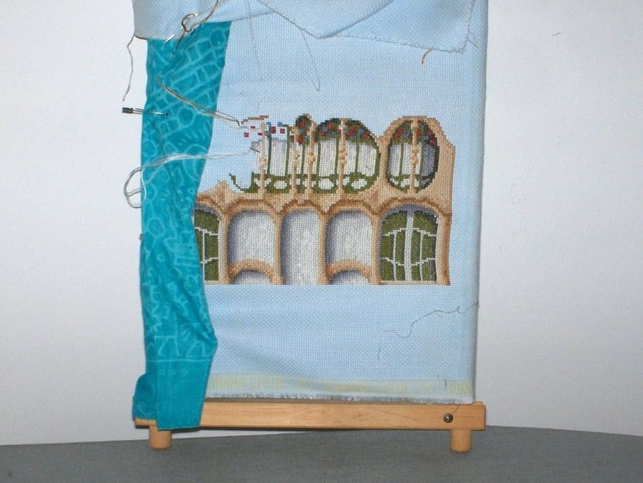 ¡Bellísimos los ventanales que protagonizan el bordado de nuestra amiga Sanlorenz@, seguramente de un edificio de Gaudí! Esta labor comenzada, colocada en un telar o un caballete, puede perfectamente adornar un rincón de la sala por su agradable contraste de colores.