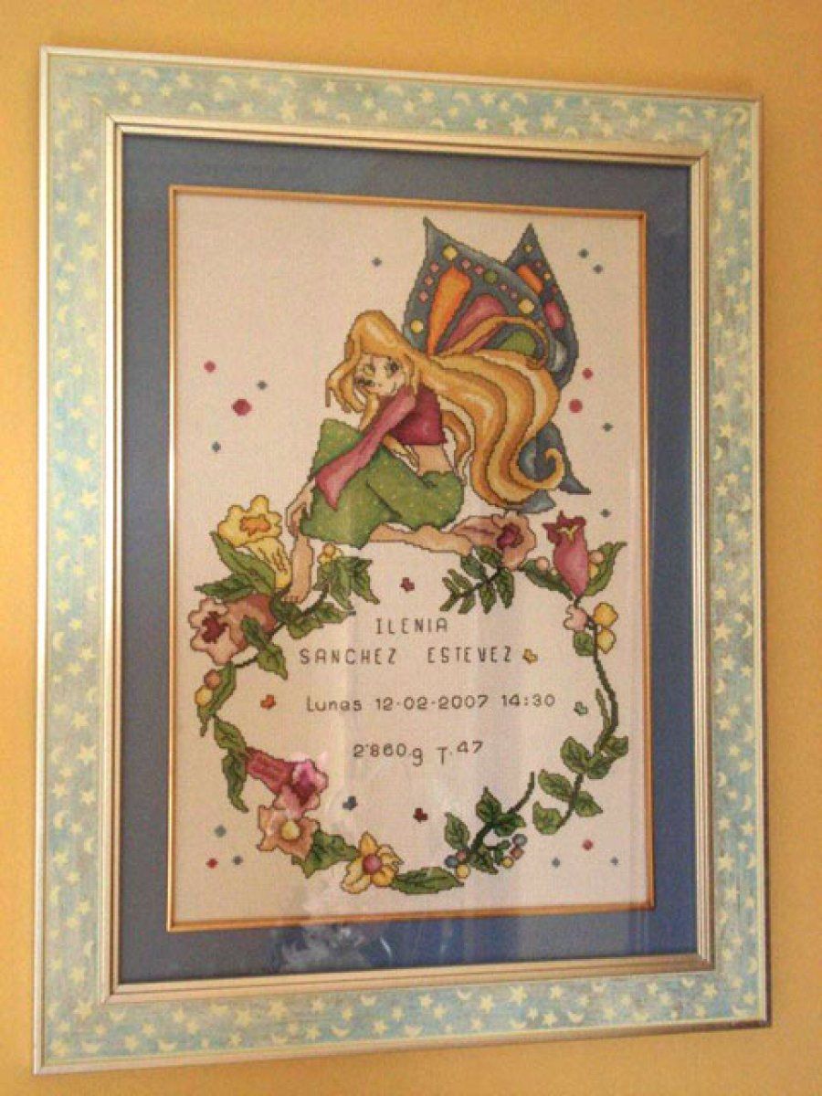 Fabiymonica es otra amante confesa del punto de cruz, y ha realizado un maravilloso recuerdo para el nacimiento de una sobrina.
