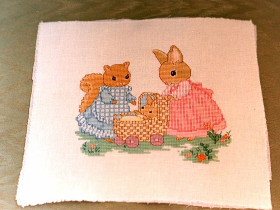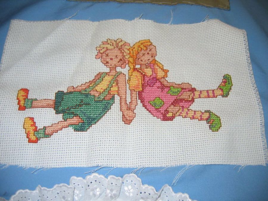 Los perfiles de trazo cálido hacen del punto de cruz un procedimiento muy apto para los adornos infantiles. Lo comprobamos en la colcha que realizó Nena72 para su sobrino.