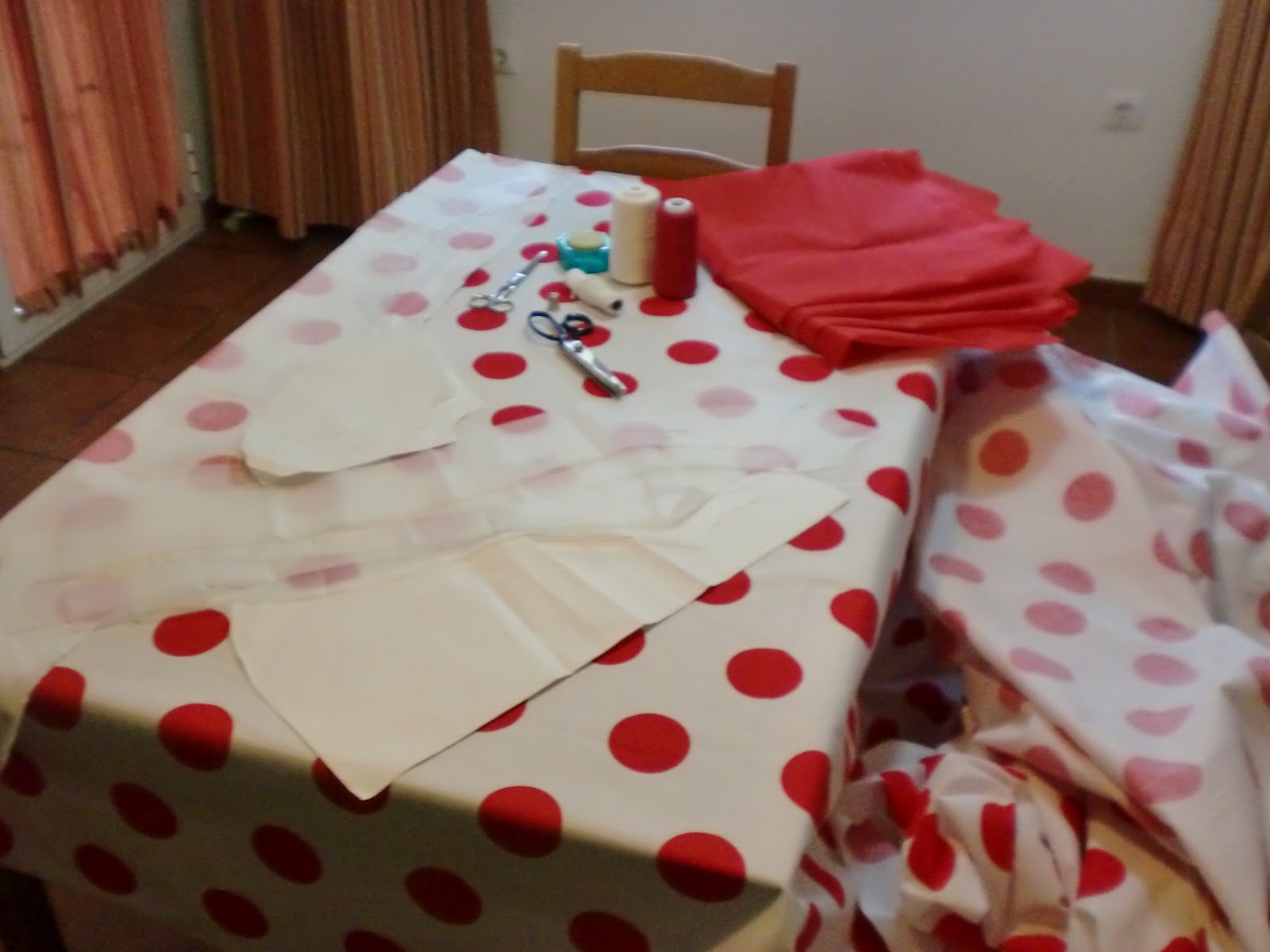Volantes córtalos dobles para los dos primeros son 10cm el de popelin y 12 para el tul pues hay que tener en cuenta que al montar uno sobre el otro se vean los dos. esta es la medida del primero para el 2º y tercer volante las medidas son de 14 y 16 respectivamente recuerda que lleva tira bordada y carrucha con lo cual hay que darle un poco mas de largo para que se vea todo.