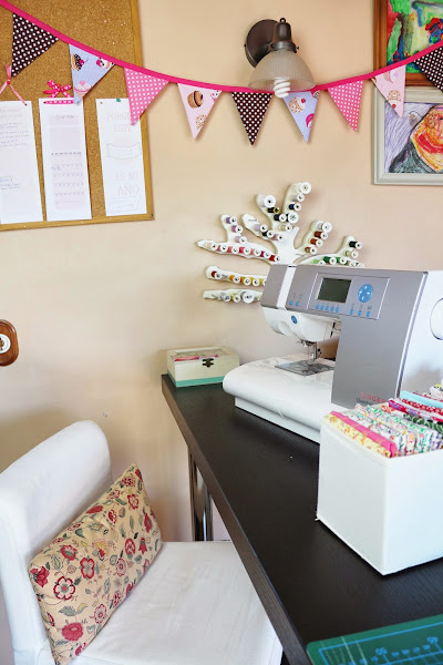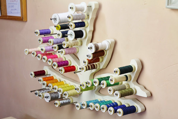 Hilos: mi organizador de hilos es una de las piezas que más me gustan de mi taller, me permite tenerlos clasificados por colores y tonos con lo que encuentro rápido el que busco.