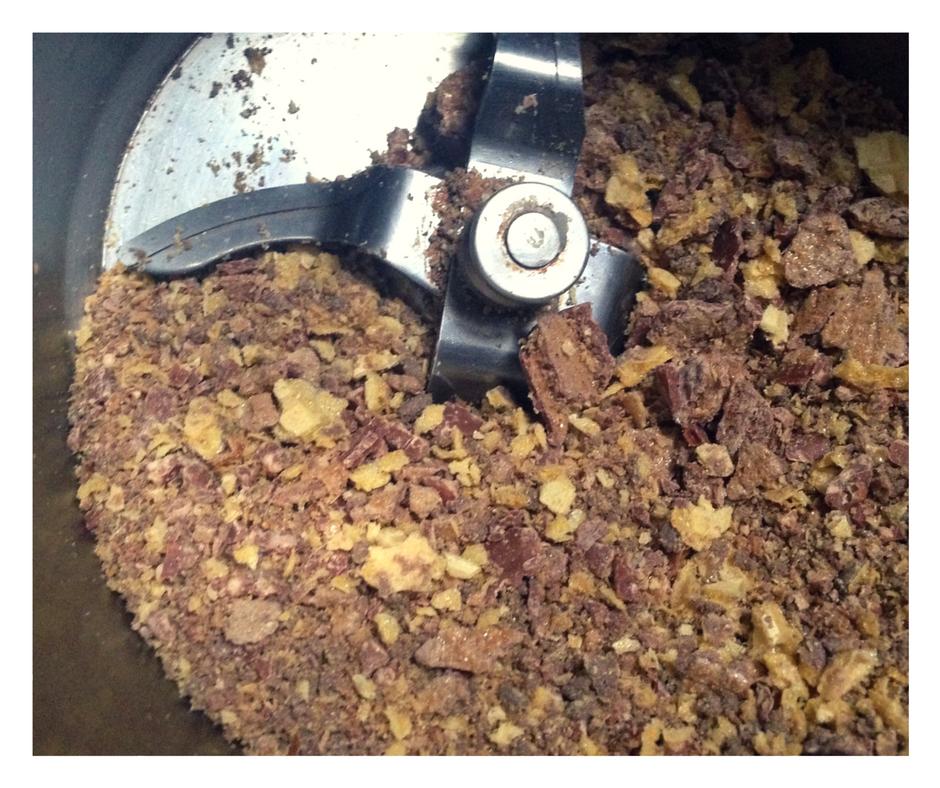 2: Trituramos las galletas las almendras y las avellanas, las incorporamos en la crema .