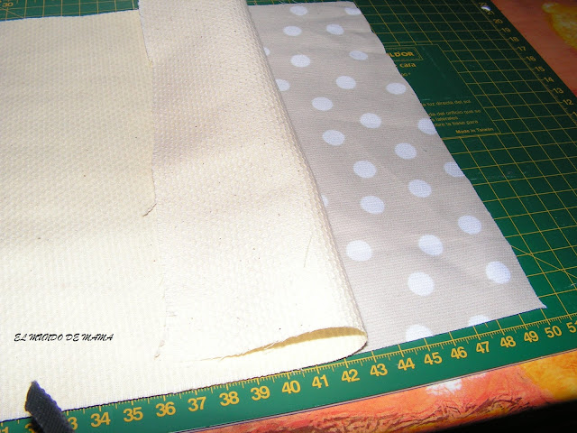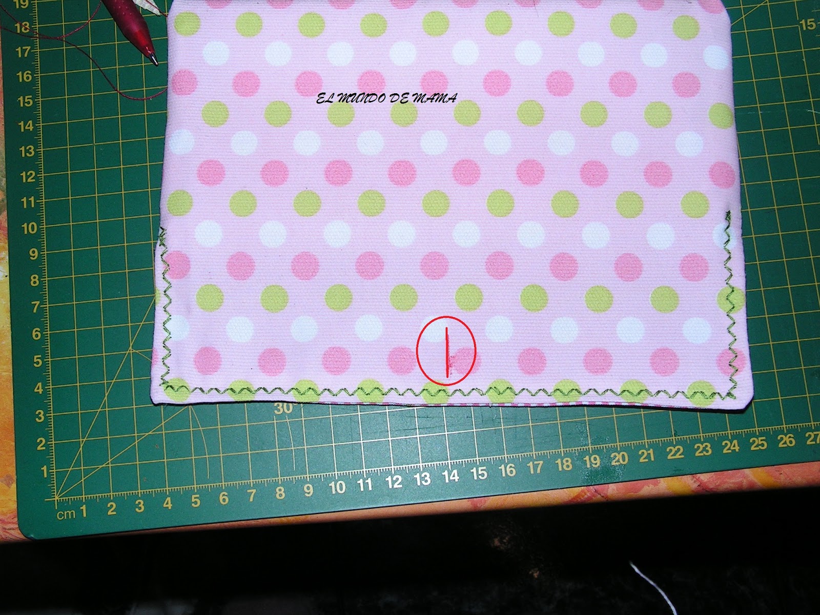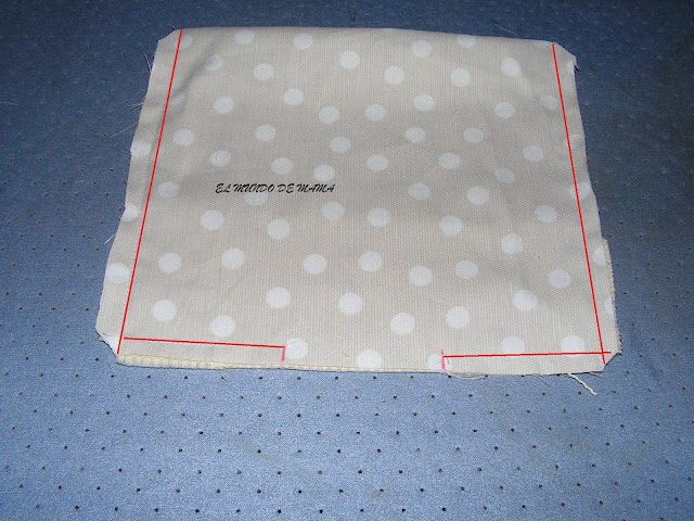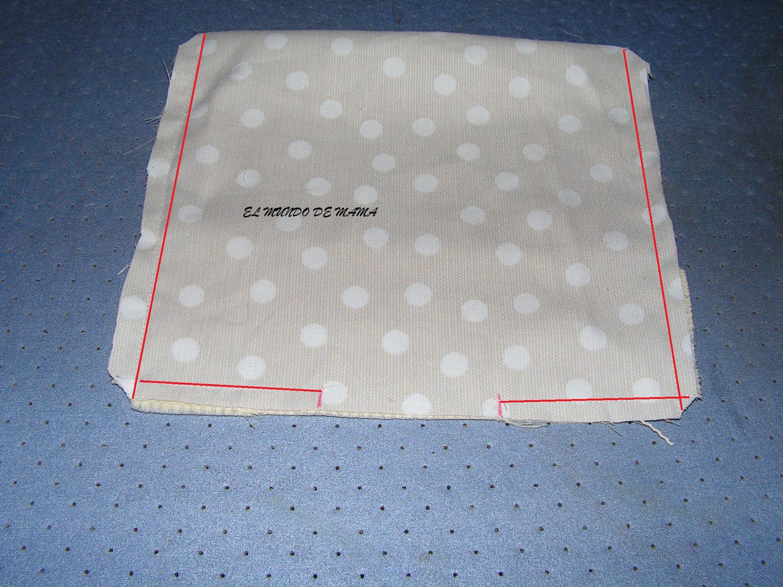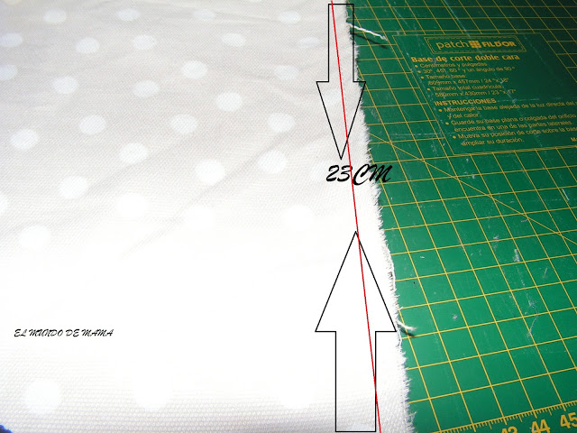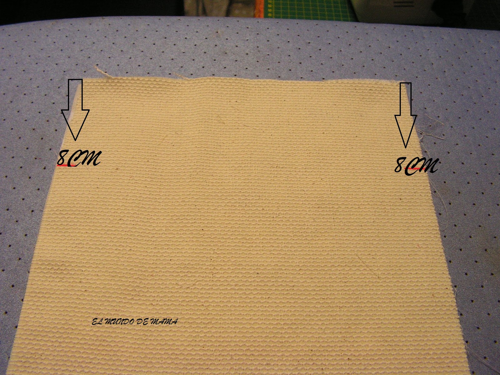En la otra parte de 23 cm en la tela de dentro medimos 8cm hacia abajo y marcamos.