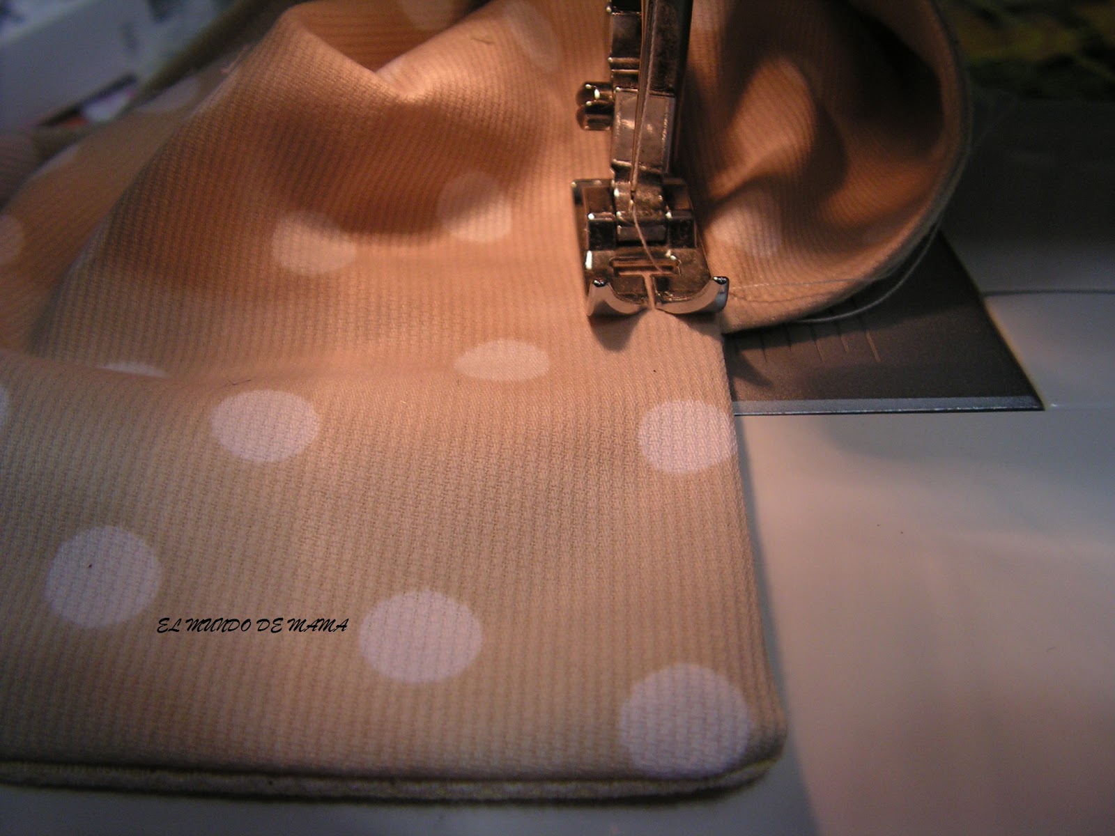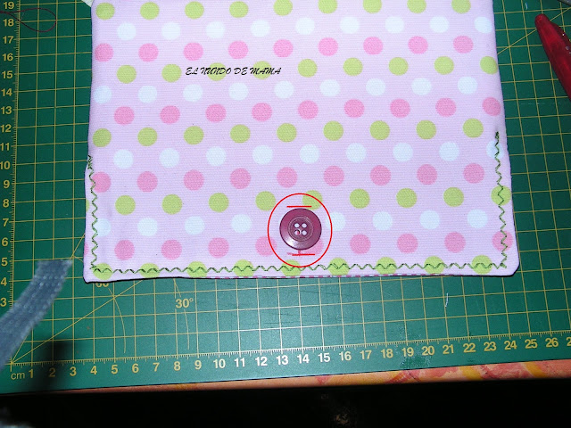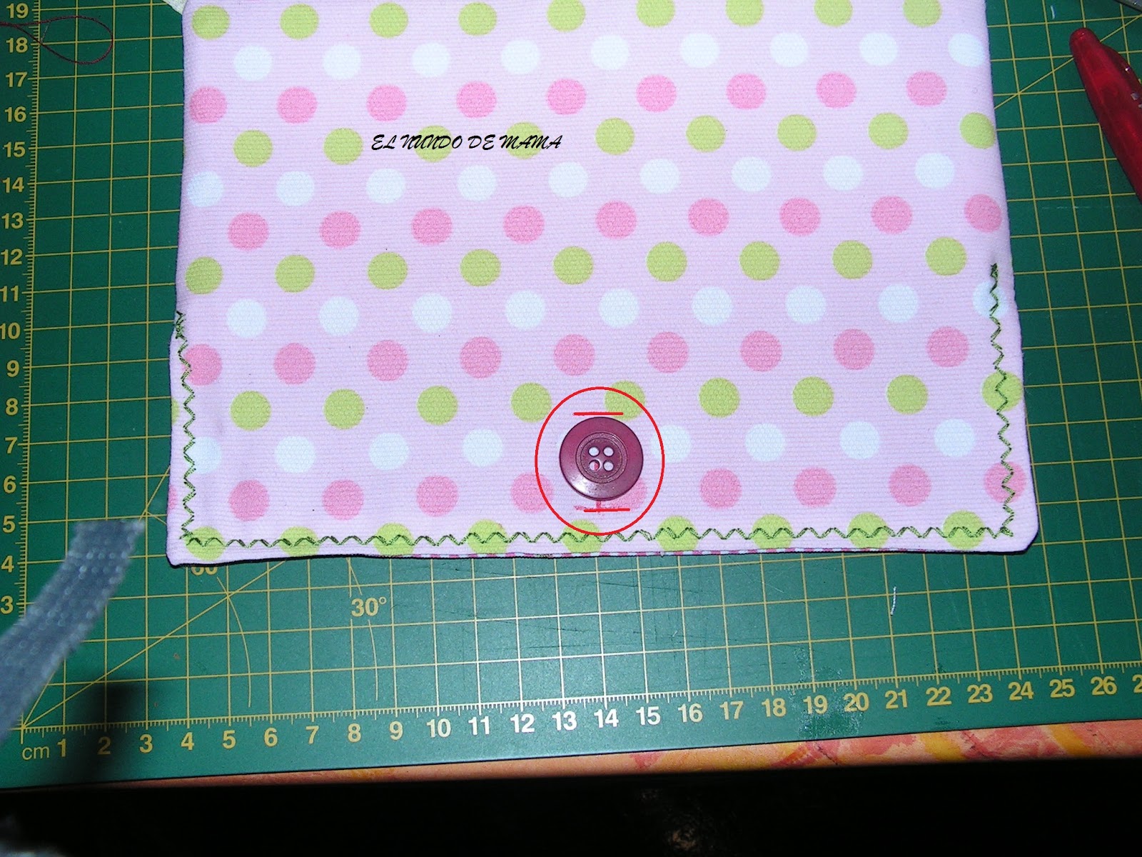Cerramos la bolsa y marcamos donde hira el boton, cosemos el boton.