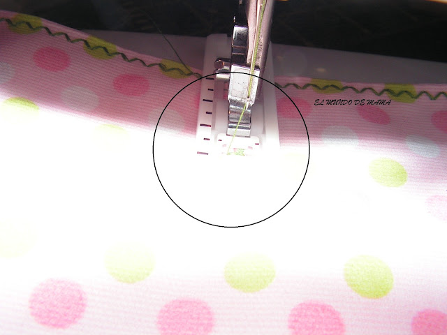 Despues ponemos la maquina en la marca 3º esta foto no la tengo, y cosemos, (vereis que cose hacia detras) hasta la marca que teniamos hecha, cuando llegemos, volvemos a poner la maquina en la marca de 2º--4º y volvemos a dar unas 5 puntadas.