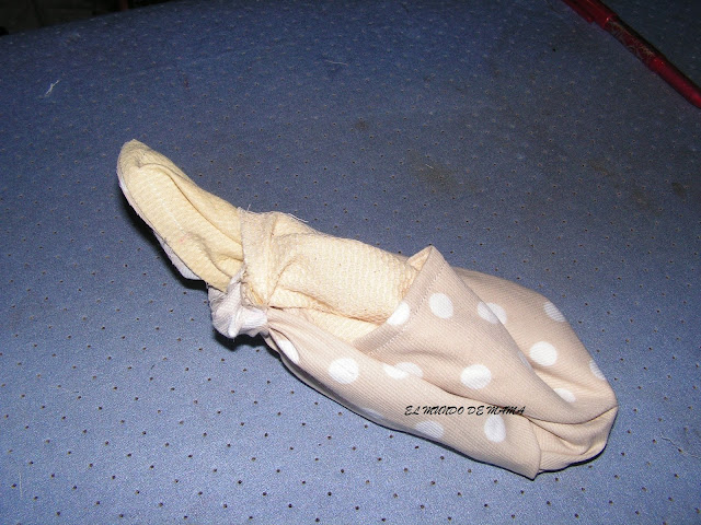 Por la abertura giramos la bolsa, y sacamos bien las puntas.