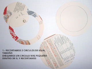 4.- recortamos otro circulo en carton y lo pegamos con silicona caliente