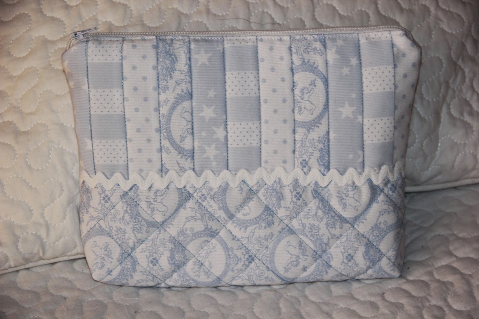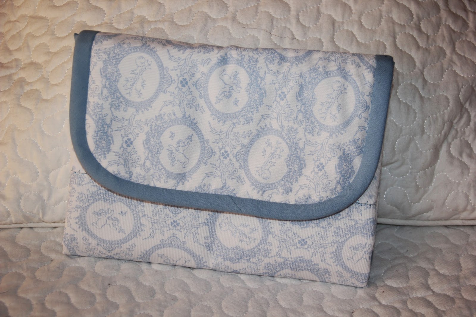 En este caso he utilizado telas de piqué en azul y blanco, unos colores muy de bebé.