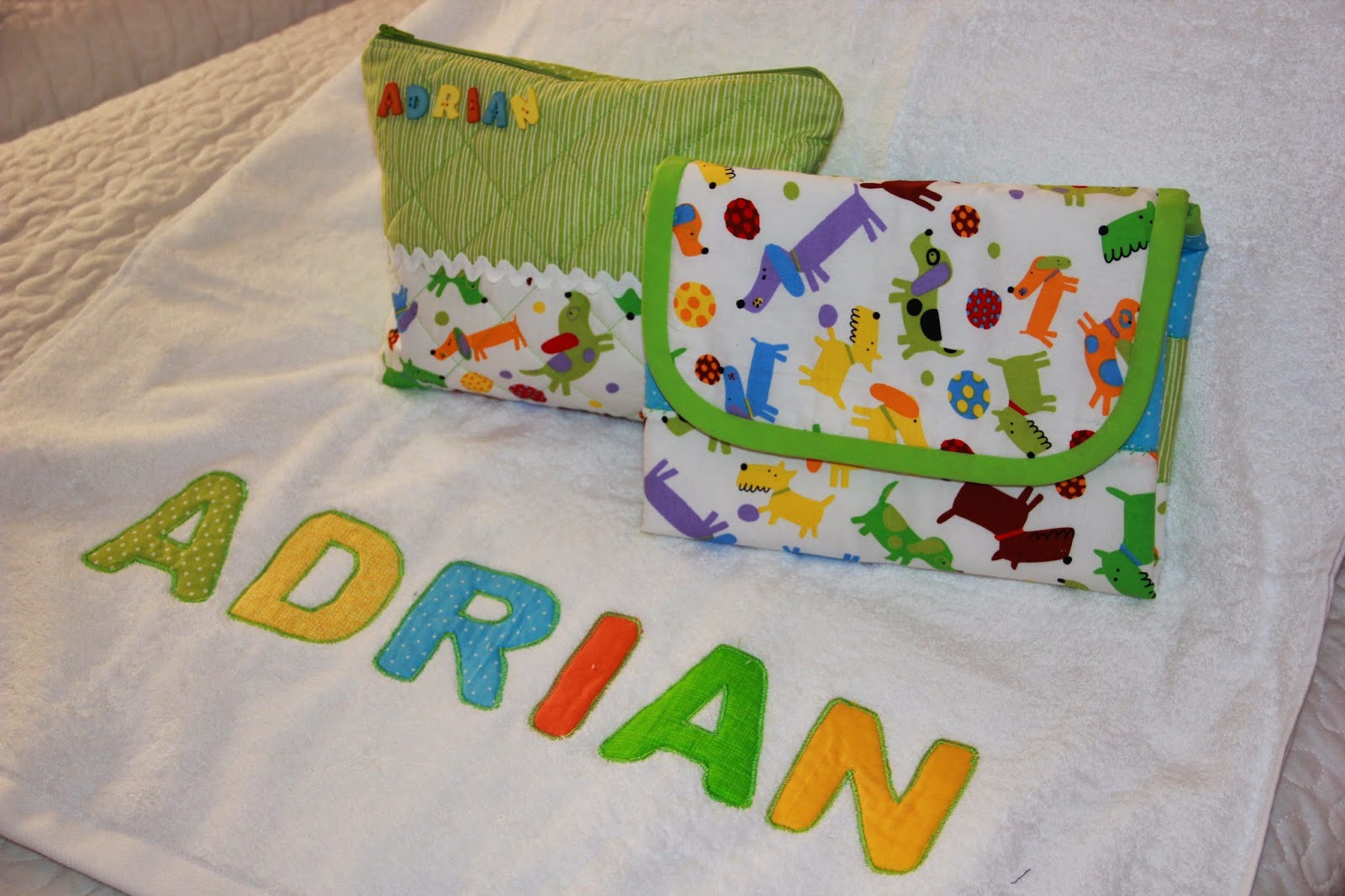 Otro de los conjuntos que hice fue para una de mis amigas y esta vez también hice una toalla a juego con el nombre del niño.