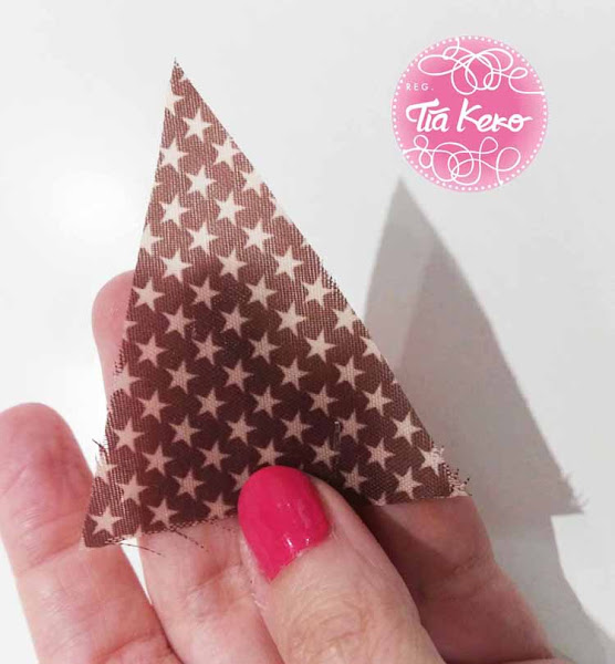 Lo primero que vamos a hacer es cortar las velas de nuestro barquito velero. Para ello recortamos dos triángulos iguales en la tela elegida.