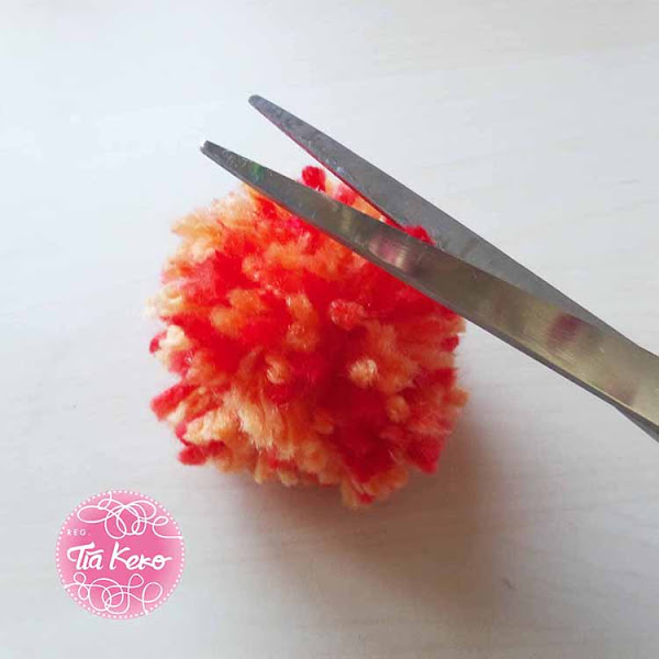 Para este sencillo diy vamos a hacer un pompom, ¿os acordaís como los hacíamos?, hace unos meses publicamos una entrada donde Natalia hacia un montón de ellos para una alfombra, podeís ver esa entrada aquí, en ella os explicamos el paso a paso para hacer pompones. Aún así, os lo explicamos de manera fácil y rápida: enrollamos la lana alrededor de la palma de la mano, bastante cantidad, luego la sacamos de la palma de la mano con cuidado y una tira de la misma lana la atamos en el centro (como en la imagen más abajo), cuando ya esta atado, comenzamos a cortar los bordes por la mitad y cuando están todos cortados comenzamos a redondear el pompom cortando los extremos de cada tira de lana (como en la imagen más abajo).