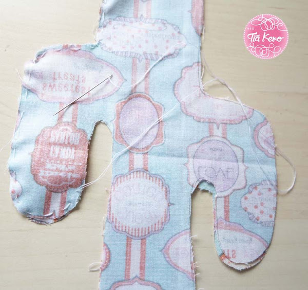 Una vez tenemos los dos cactus de tela comenzamos a coserlos. Con cuidado y con tranquilidad cosemos el cactus de tela.
