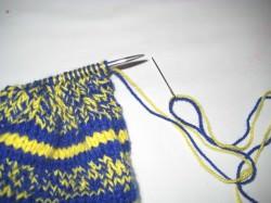 Se cortan las hebras con las que estamos tejiendo dejándolas largas para que sirvan para rematar y coser el gorro.