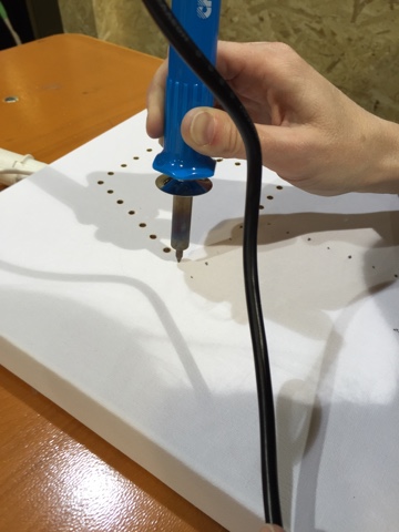 La parte artística era perforar el lienzo haciendo un dibujo, el que nosotras quisiéramos. Con un quemador perforador fuimos resiguiendo el dibujo, haciendo agujeros equidistantes.