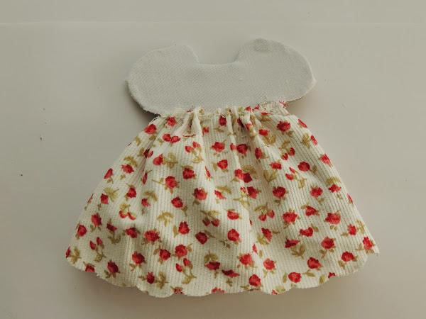 Para finalizar, vestimos la muñequita con la pollera y ahora si rematamos el fruncido.