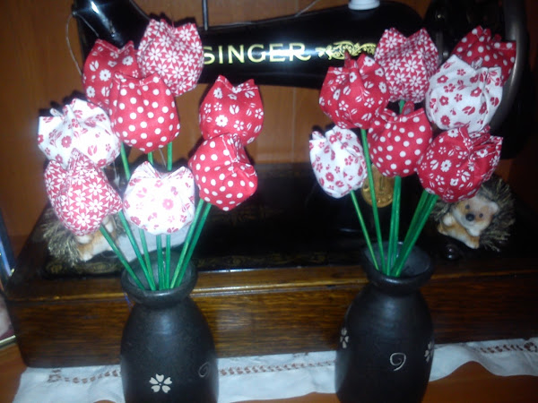 Y es que estos tulipanes han sido creados y crecidos en casa en sólo 15 minutos! Un poco de tela,algodóny habilidades para coser.Et voilà! :)Los hice dos años atrás después de haberlos visto en Pinterest, de una manera intuitiva, ya que no encontré ningún tutorial ni nada por el estilo.El tono marrón no es el más adecuado para unos tulipanes, pero aun así creo que la combinación de colores tierra ...
